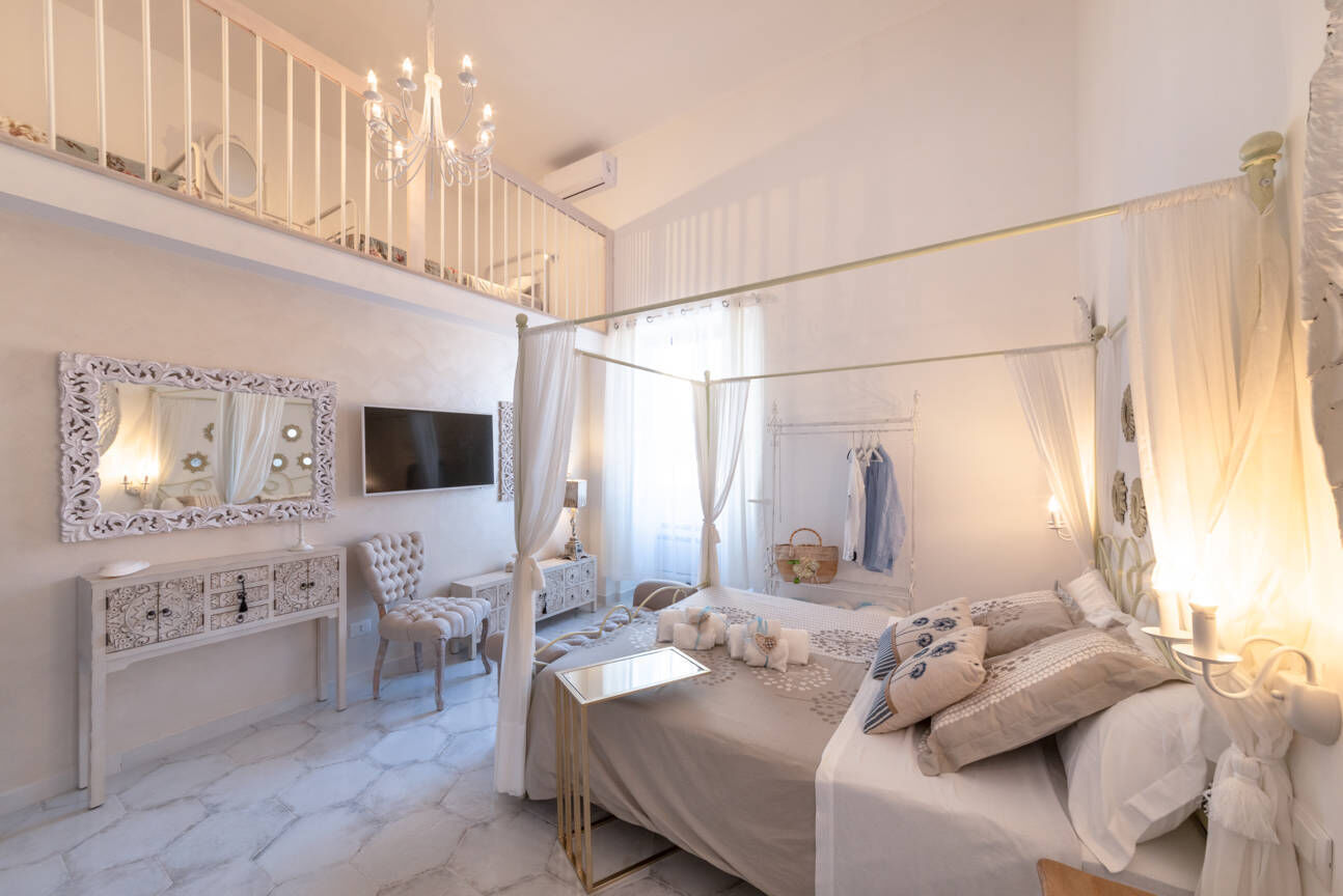 Due camere per coppie, quattro quadruple per famiglie e una suite con idromassaggio privato arredate con garbo e cura dei dettagli, estremamente funzionali e accoglienti, ciascuna con un stile differente ma tutte accomunate da un’unica e romantica storia.
